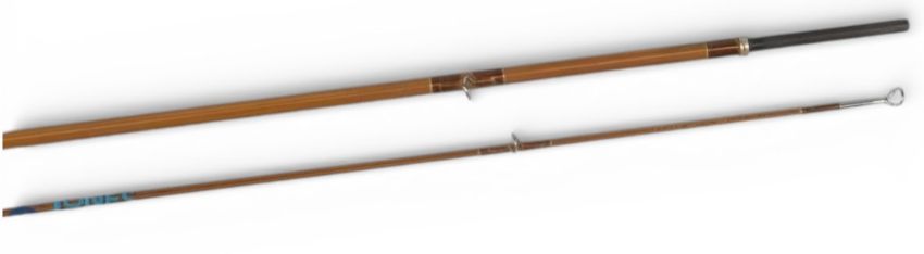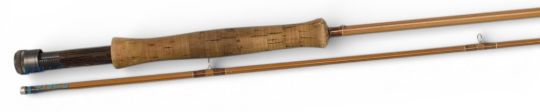 A fine Daiwa Hexagon Whisker carbon trout fly rod with split cane finish H W 98, 9ft 5" 2pc line 5/7# alloy uplocking reel seat with wood insert, lined stripping rings, MCB and zipped carry case. Very light use
