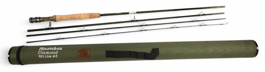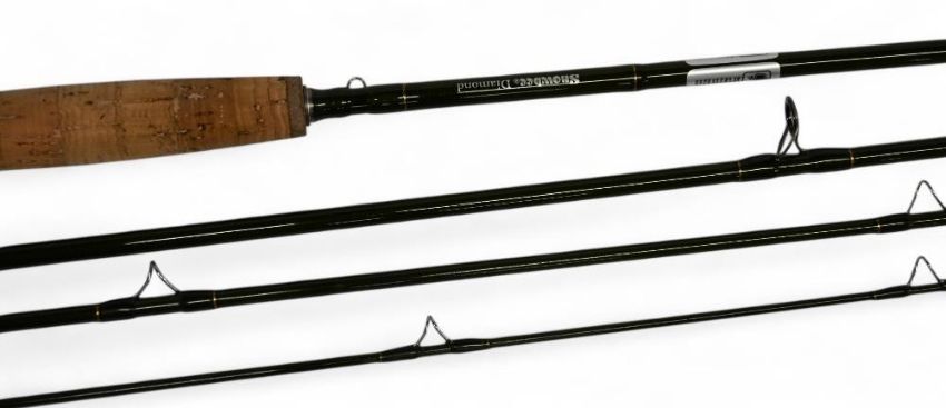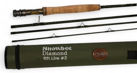 Snowbee "Diamond" carbon trout fly rod, 10ft 4pc line 3#, alloy double uplocking reel seat with burr wood insert, lined stripping rings, MCB and Cordura tube. Very light use