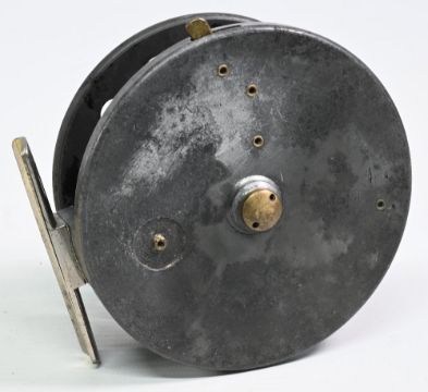 Unnamed Allcocks alloy centre pin/trotting reel, 4” wide spool, face spool latch, twin ivorine handles, rim lever, on/off check, alloy reel seat. Wear for age, runs very well