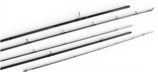 Drennan Red Range mini carp feeder, 9’6” 2 piece, lacking one ring to quiver tip, a Shakespeare Xcede quiver, 8’ 2 piece carbon, casting weight 10-40grams, Duplon handle, and a clean Daiwa power mesh X jerk bait special rod, 6’6”, one piece, casting weight 2-6oz, with multiplier fit handle, no bags. (3)