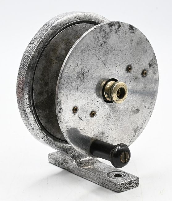Hardy stamped 3 ½” longstone pattern reel with 3 ¼” spool dia, optional rim lever, central screwing nut, c1930s